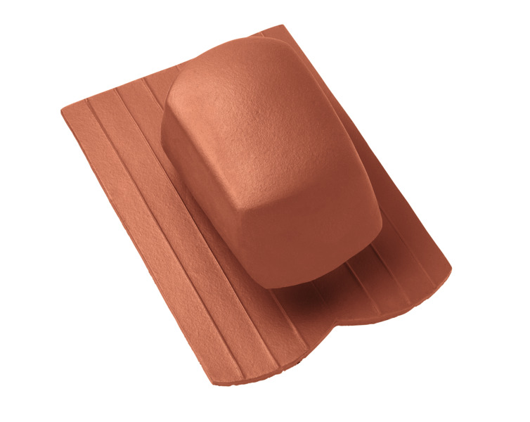 Für eine materialgleiche und formschöne Entlüftung aufsteigender Lüftungsleitungen bietet Braas Ton Sanilüfter passend zur Dachdeckung an.
