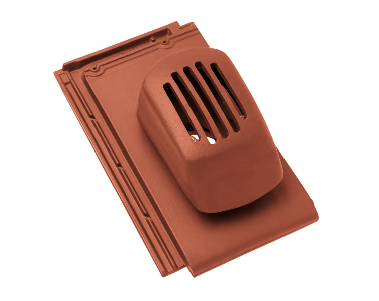 Für eine materialgleiche und formschöne Entlüftung aufsteigender Lüftungsleitungen bietet Braas Ton Sanilüfter passend zur Dachdeckung an.