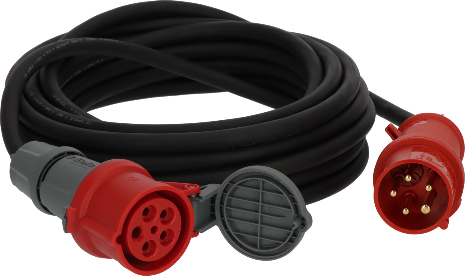 - 10m Spezial-Gummikabel mit CEE-Phasenwender und Kupplung mit Verschlussklappe, 5-polig