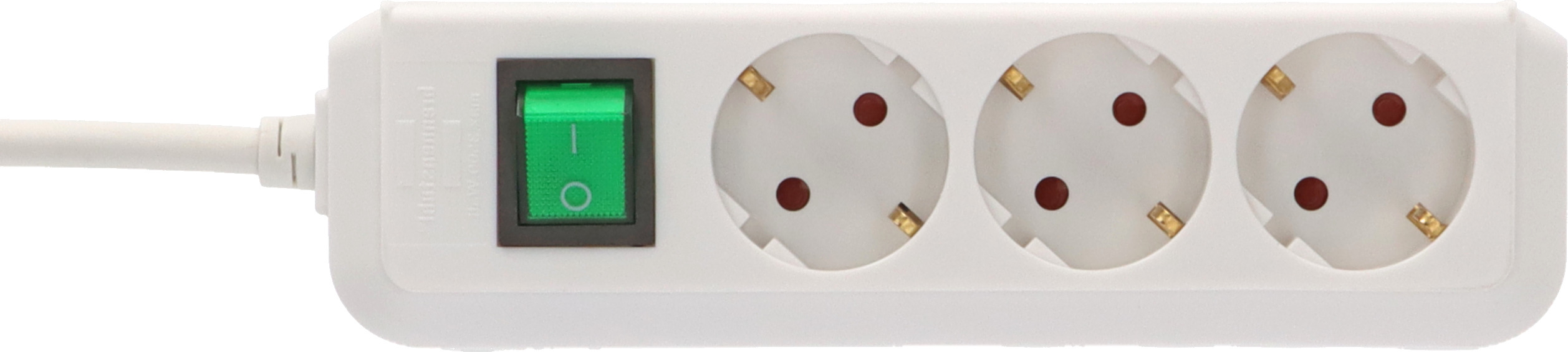 - Steckerleiste mit erhöhtem Berührungsschutz: Kunststoffplättchen verschließen die Kontakte der Steckdose
