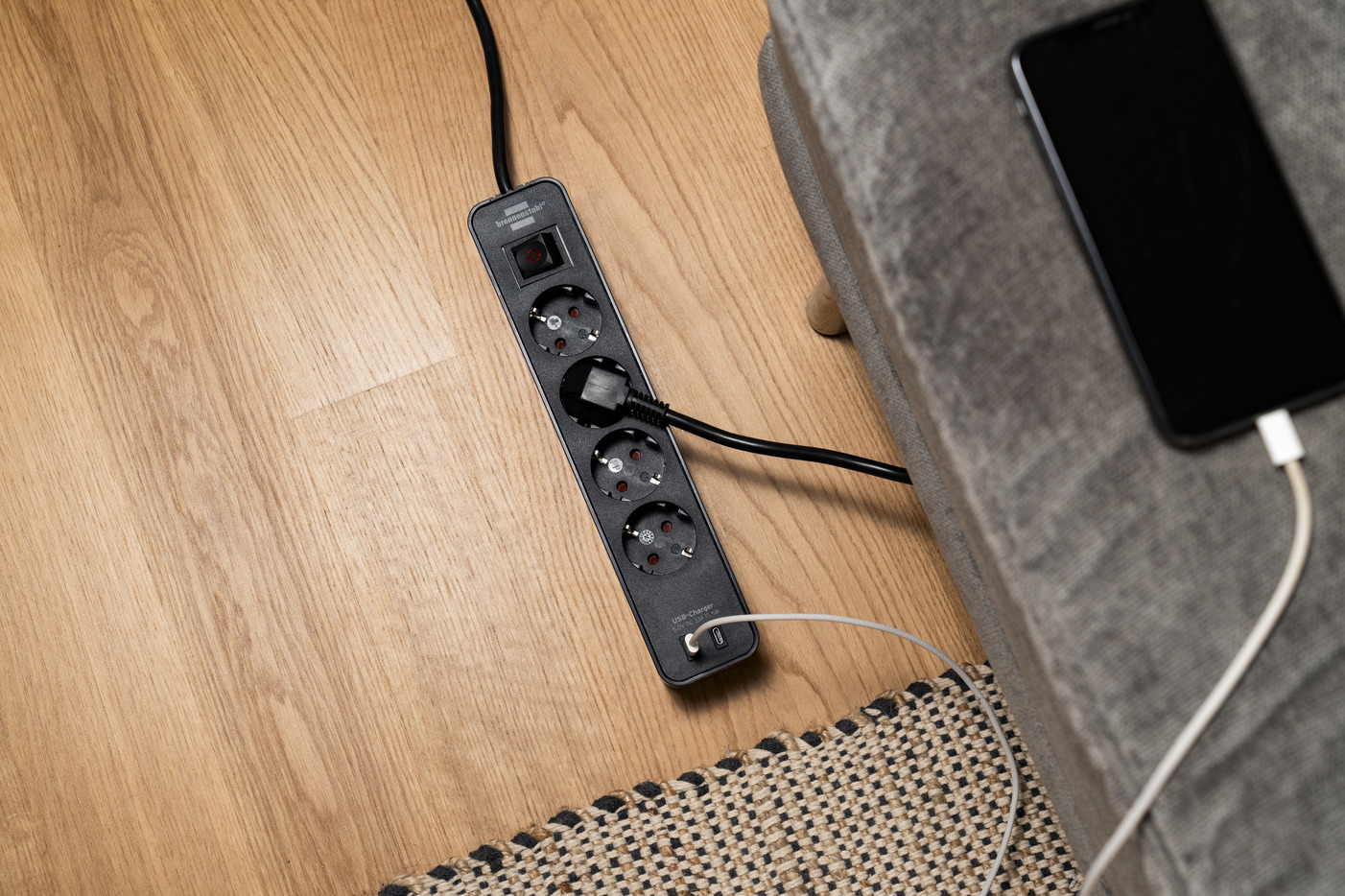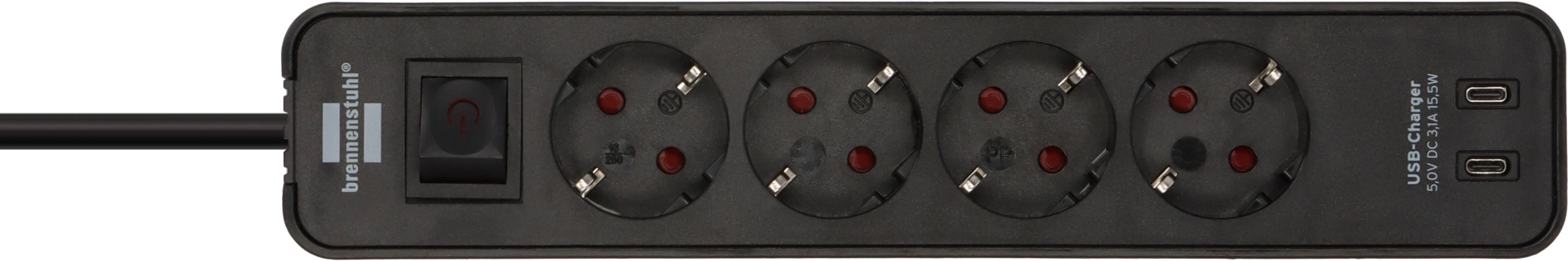1,5m, 4er, m. Schalter, USB-C, schw.
