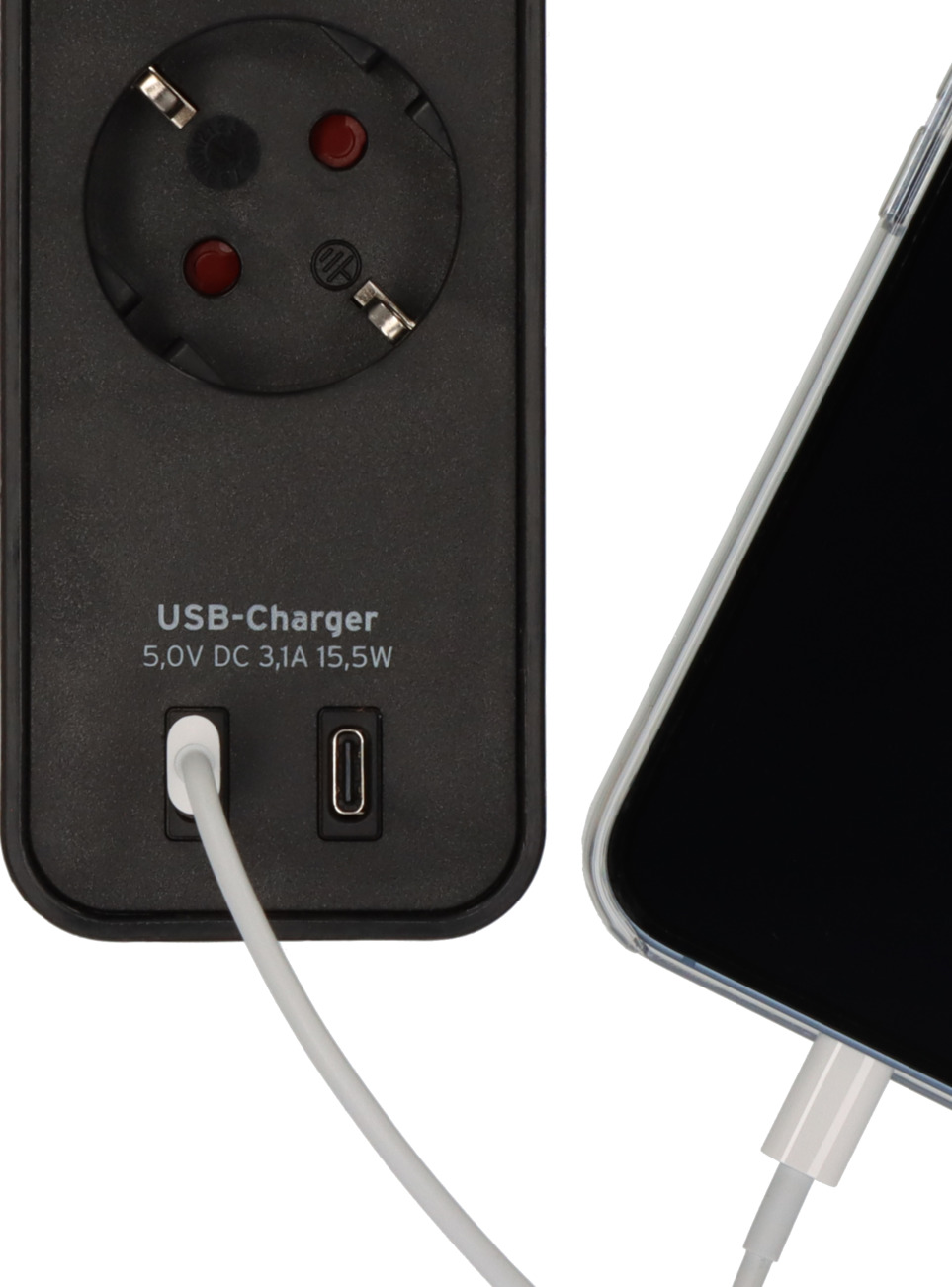 • Steckdosenleiste mit zwei USB C Ladebuchsen 5V/3.10A, 15.5W - für das Aufladen Ihrer elektronischen Geräten wie Smartphones, Tablets und anderen USB-kompatiblen Geräten