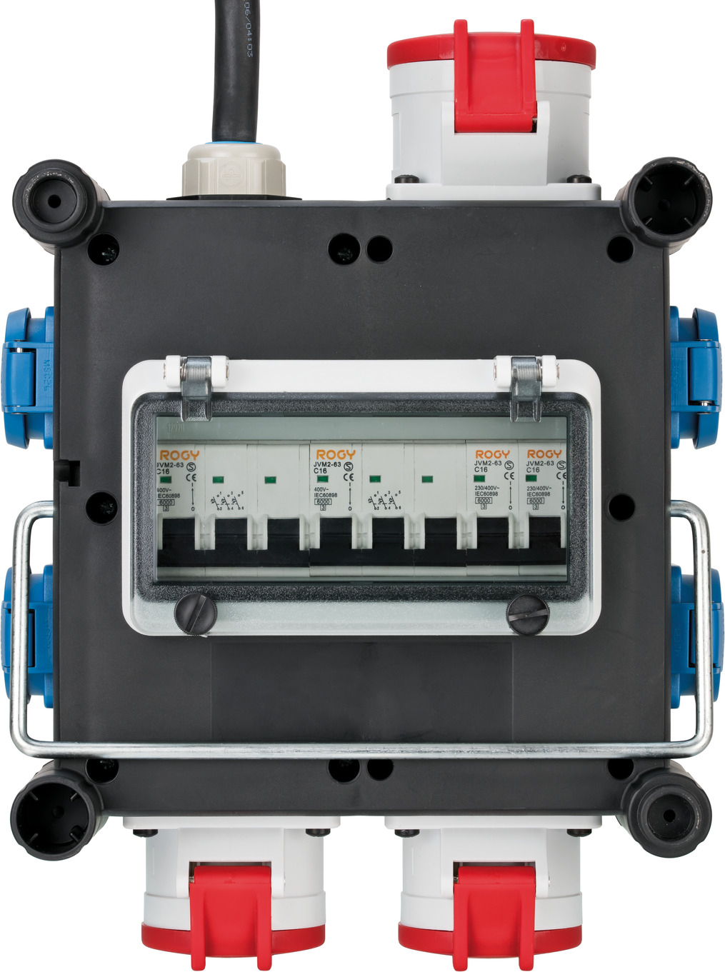 - Gummi-Stromverteiler mit Qualitätssteckdosen, stabilem Metalltragegriff, zertifizierten Sicherungsautomaten und ölbeständigem Kabel