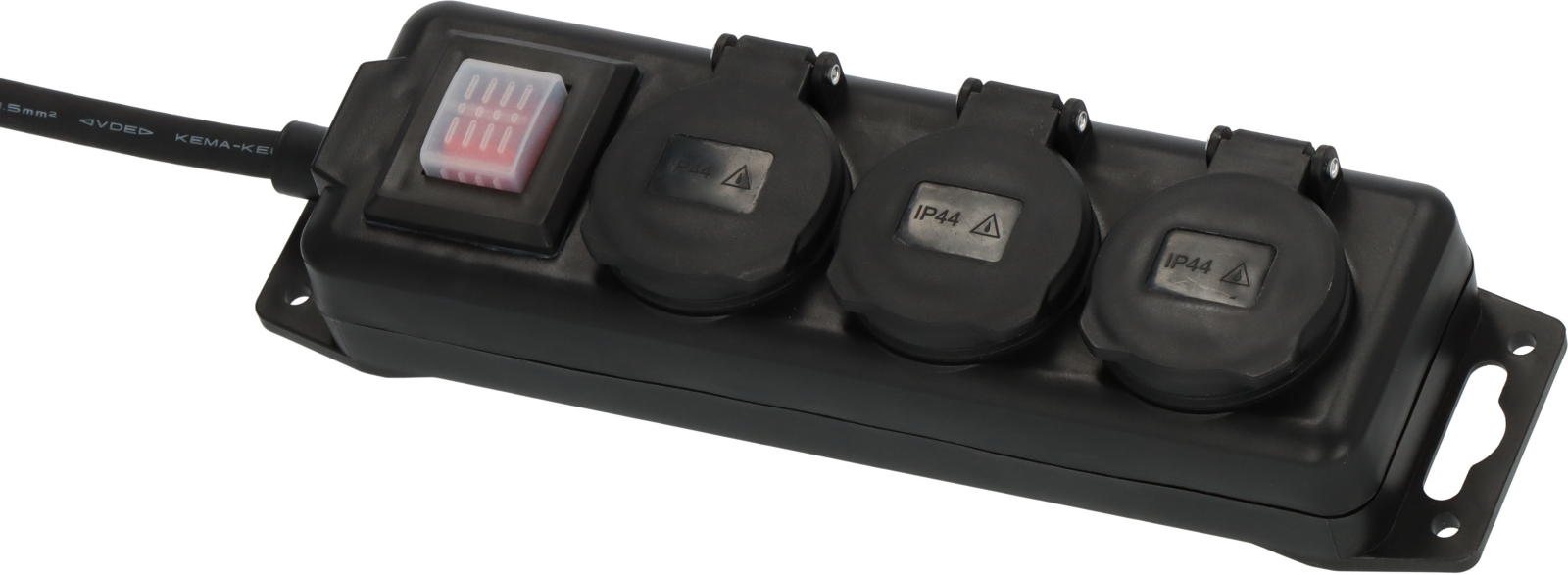 - Die Steckdosenleiste für außen eignet sich durch die Schutzart IP44 und dem 2m H07RN-F 3G1,5 Kabel ideal für den robusten und dauerhaften Einsatz im Außenbereich, bspw. im Garten, auf Baustellen, im Eventbereich etc.