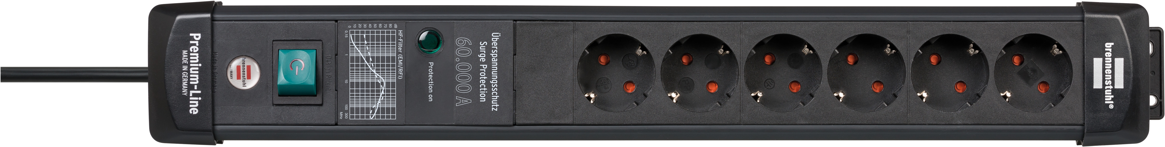 Premium-Line Steckdosenleiste 6-fach mit Überspannungsschutz bis zu 60.000A (Mehrfachsteckdose mit 3m Kabel und mit Schalter, Steckdosenleiste Wandmontage, Made in Germany)