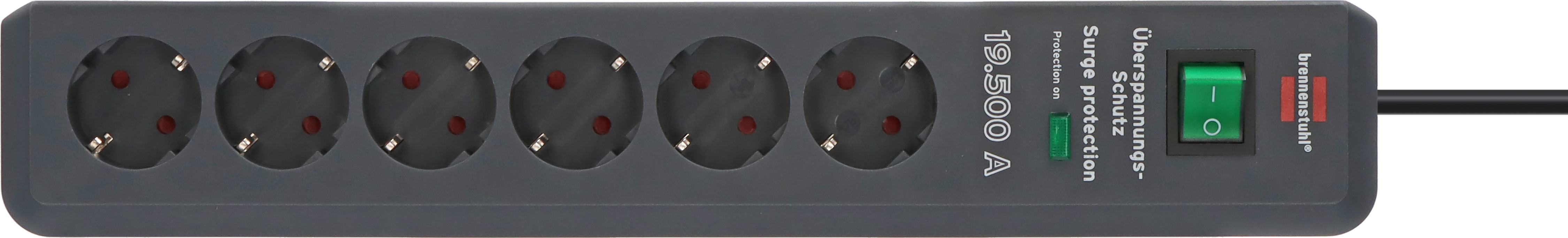 • Mehrfachsteckdose 6-fach schützt wertvolle Geräte vor Überspannungen mit einem max. Ableitstrom bis zu 19.500 A (Schutz bei Gewitter, Blitzschlag, etc.)