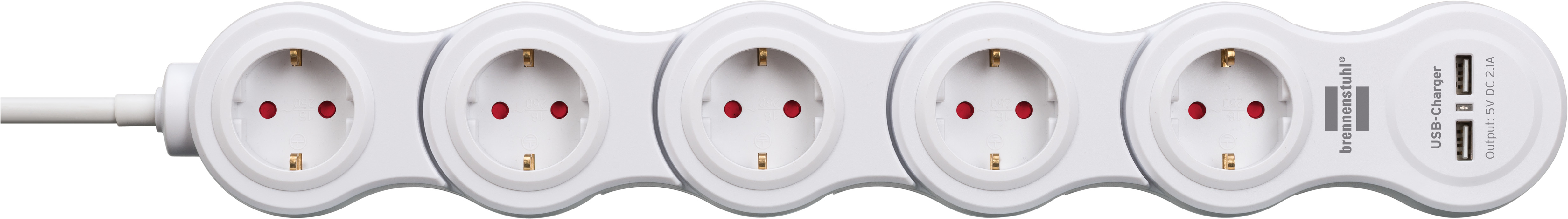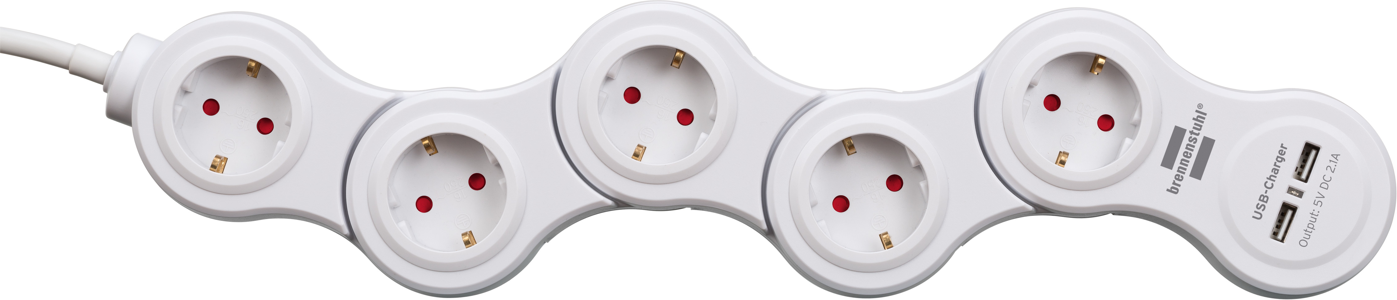 - Flexible Steckdosenleiste 5-fach mit 2 USB Ladebuchsen, 1,4m Kabellänge (H05VV-F3G1,5) und erhöhtem Berührungsschutz