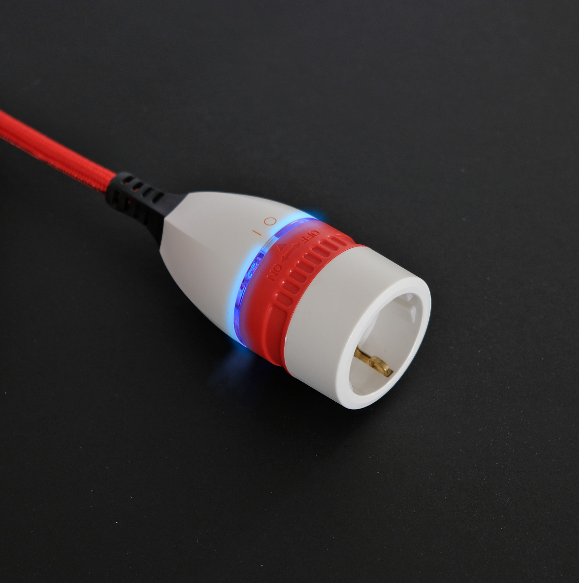 - Mit Hilfe des beleuchteten Drehschalters lässt sich die Stromzufuhr ganz bequem und flexibel an der Kupplung ein- und ausschalten, ohne den Stecker ziehen zu müssen