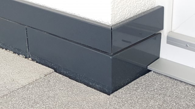 Trittschutzprofile fixieren und versiegeln zusätzlich aufgehende Dachabdichtungsbahnen an Mauerwerken. Bei Dachterrassen oder Balkonen verhindern sie mechanische Beschädigungen, z. B. im Randbereich des Plattenbelages zur Abdichtungsbahn, und sorgen für einen optisch ansprechenden Anschluss.