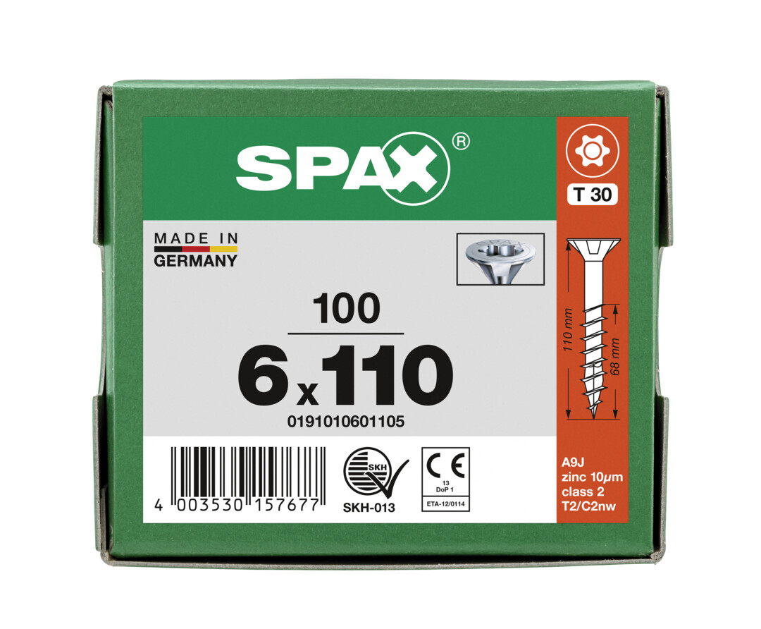 - 4CUT: Ohne Vorbohren (holzabhängig), ihre Spitze verringert wirkungsvoll die Spaltwirkung. Vierkant verdrängt die Fasern des Holzes und reduziert das Einschraubdrehmoment.