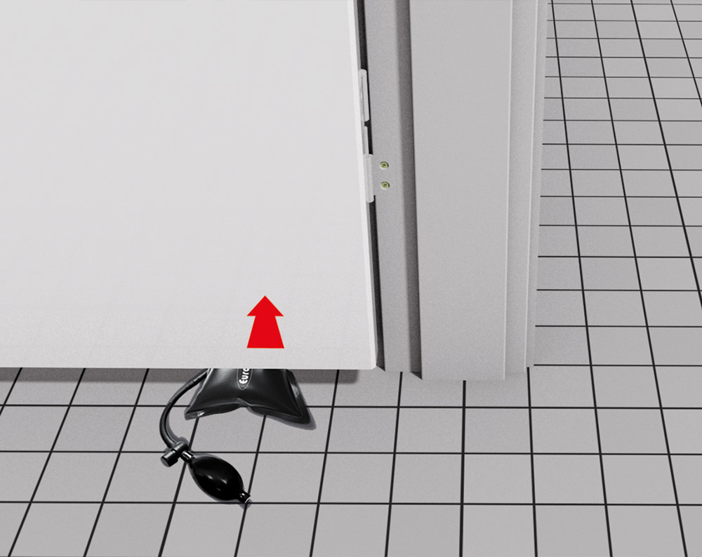 Das Luftkissen Level Max ist ein aufpumpbares Montage-Luftkissen mit integrierter Pumpe, welches zum Anheben, Ausrichten und Positionieren von Fenstern, Türen sowie Möbeln, Schränken und Haushaltsgeräten dient. Die maximale Hebekraft des Luftkissens beträgt 100 kg. Umständliches Hantieren mit Keilen oder anderen Montagehelfern gehört der Vergangenheit an, denn das Eurotec Luftkissen Level Max eignet sich hervorragend für das millimetergenaue Ausrichten, Fixieren und Montieren von Fenstern, Türen, Möbeln und vielem mehr. Zudem punktet es durch seine einfache Handhabung, da es einhändig platziert und mit der integrierten Pumpe aufgeblasen werden kann. Das Luftkissen Level Max ist nicht nur sehr widerstandsfähig und belastbar, sondern auch weich, wodurch es sich perfekt an unebene Untergründe anpassen kann und sanft zu allen empfindlichen Oberflächen, wie zum Beispiel Fensterrahmen oder Türen ist.