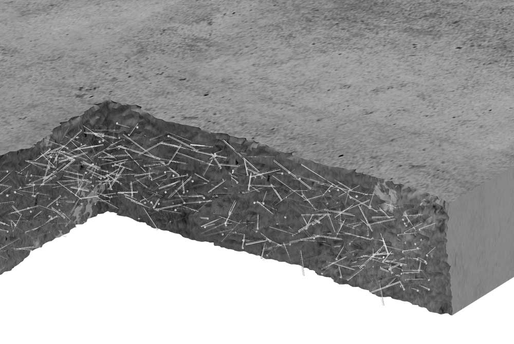 Der Zusatz von Fasern in Beton und Estrich wirkt verstärkend und reduziert das auftreten von Rissen.