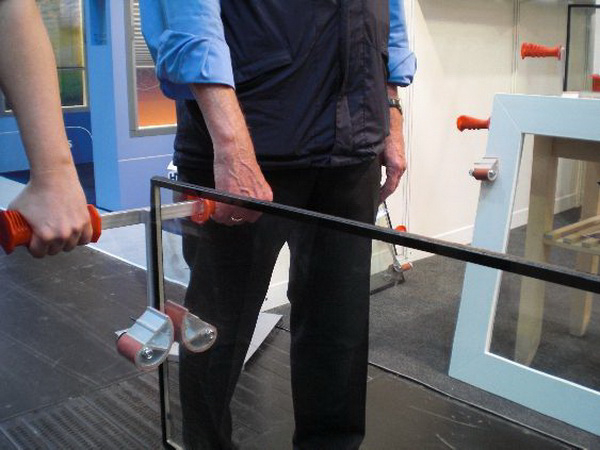 Das Klemmbackensystem passt sich der Plattenstärke stufenlos an und hält das Tragegut absolut rutschfest, ohne es zu beschädigen.