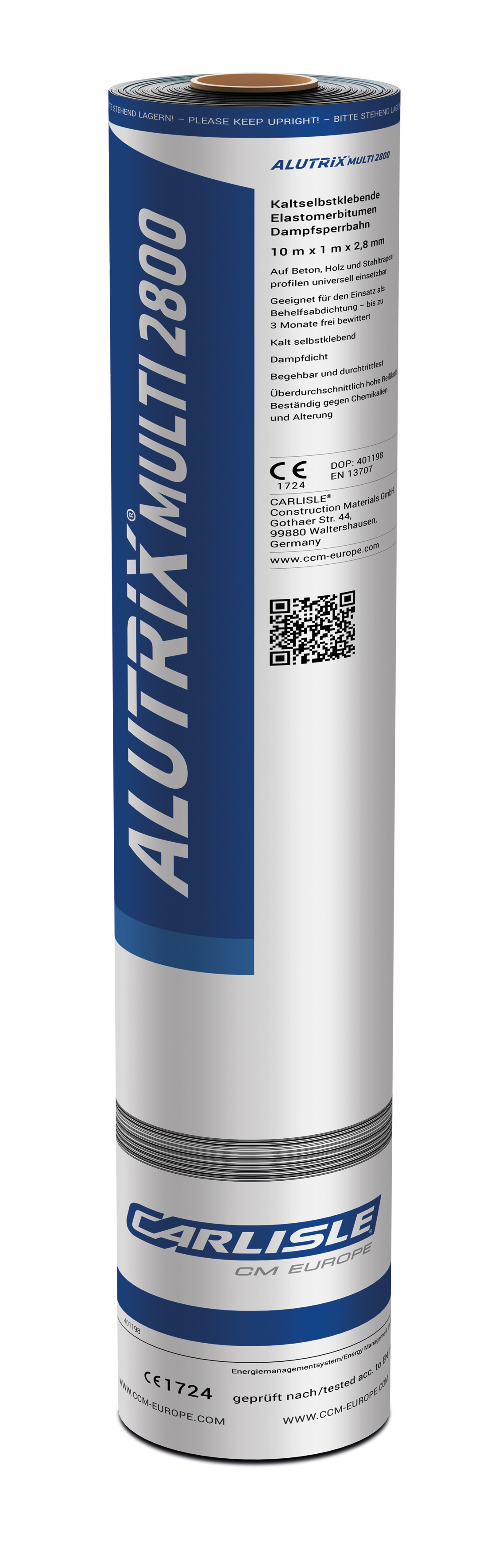 Alutrix Multi 2800 Kaltselbstklebende Elastomerbitumen-Dampfsperrbahn mit Sicherheitsnaht. Dicke: 2,8mm; Breite 1.000mm; Länge 10m