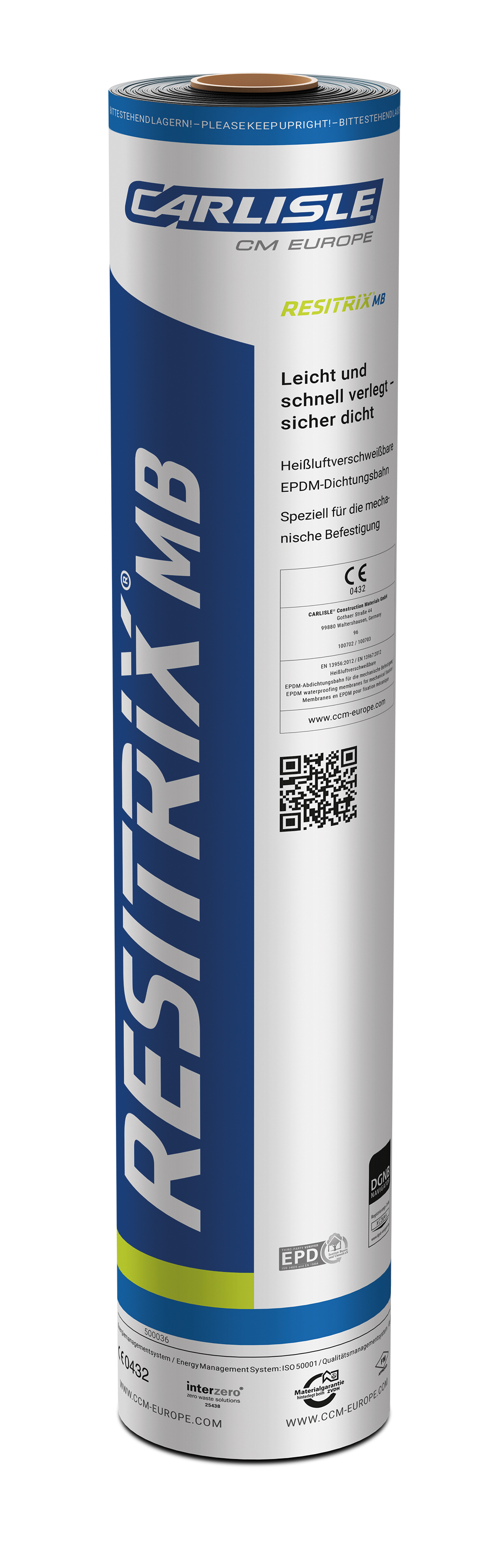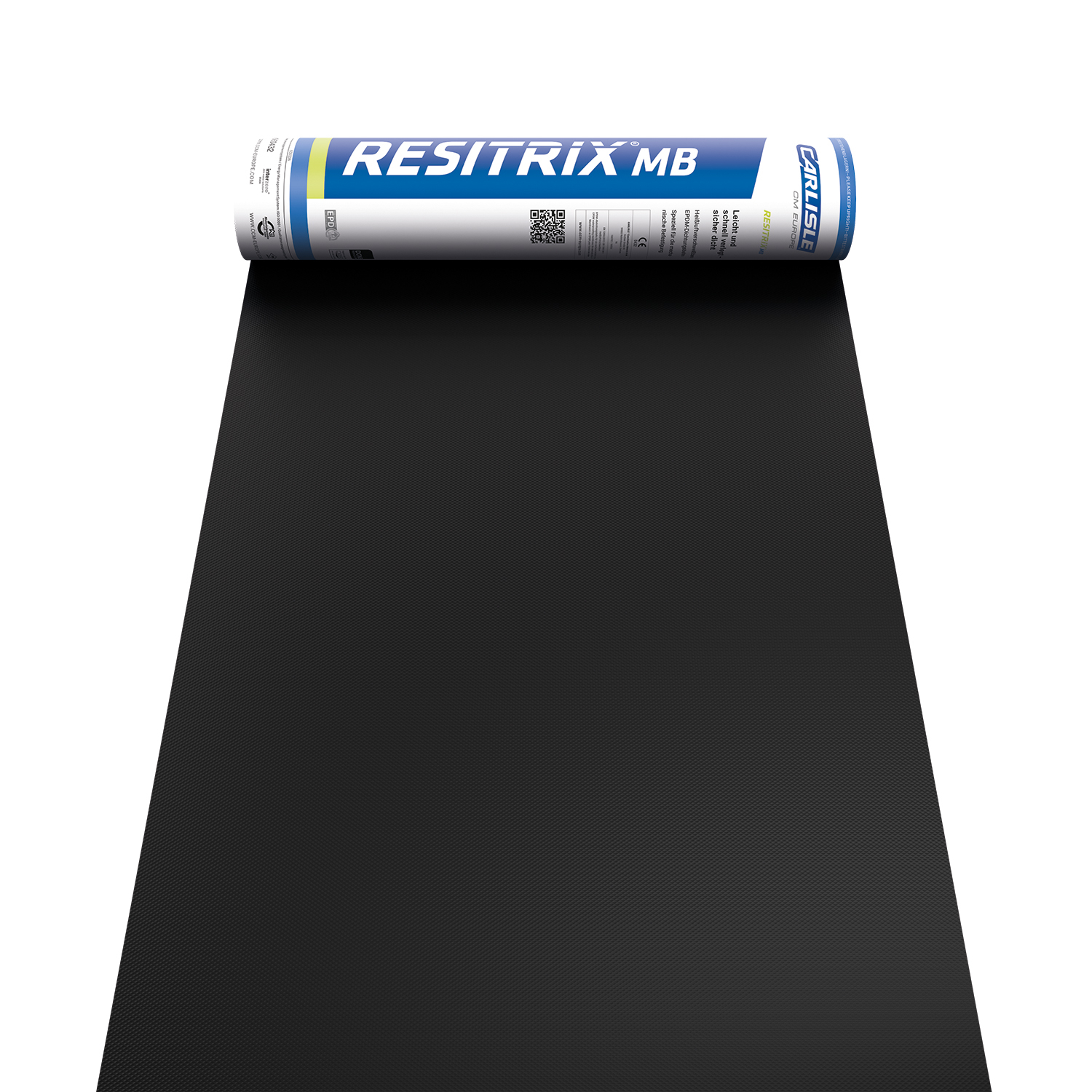 RESITRIX® MB speziell für die mechanische Befestigung ist eine heißluftverschweißbare Abdichtungsbahn auf Basis des Synthesekautschuks EPDM mit einer Verstärkung aus Glasgelege. Die Unterseite ist mit einer polymermodifizierten Bitumenschicht mit PE-Folie versehen.