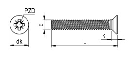 Gewindeschraube DIN 965, Flachsenkkopf, M 3 x 12, Vollgewinde, PZD 1, Edelstahl A2, gebeizt, passiviert, 100 Stk.