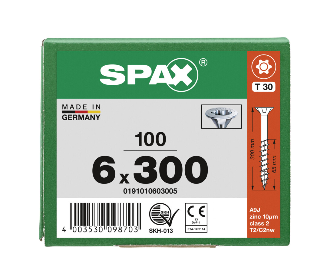 - 4CUT: Ohne Vorbohren (holzabhängig), ihre Spitze verringert wirkungsvoll die Spaltwirkung. Vierkant verdrängt die Fasern des Holzes und reduziert das Einschraubdrehmoment.