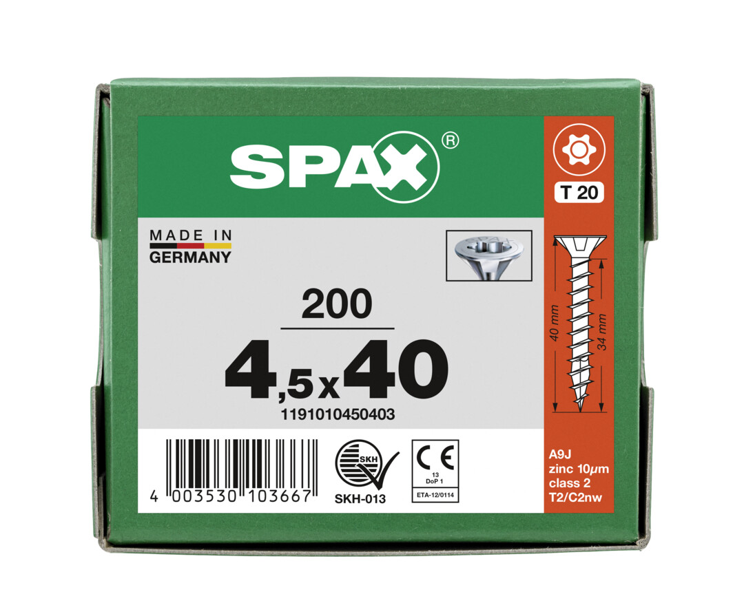 - 4CUT: Ohne Vorbohren (holzabhängig), ihre Spitze verringert wirkungsvoll die Spaltwirkung. Vierkant verdrängt die Fasern des Holzes und reduziert das Einschraubdrehmoment.
