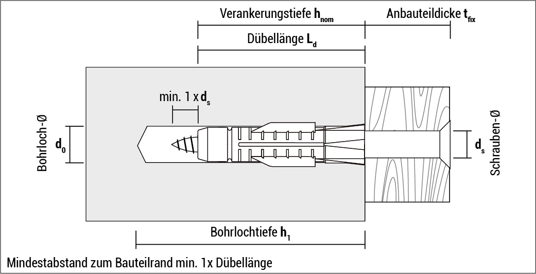- Für fast alle Baustoffe geeignet. In Vollbaustoffen verspreizt sich der Dübelkörper gegen die Bohrlochwand, in Lochbaustoffen, Gipskartonwänden etc. verknotet er sich