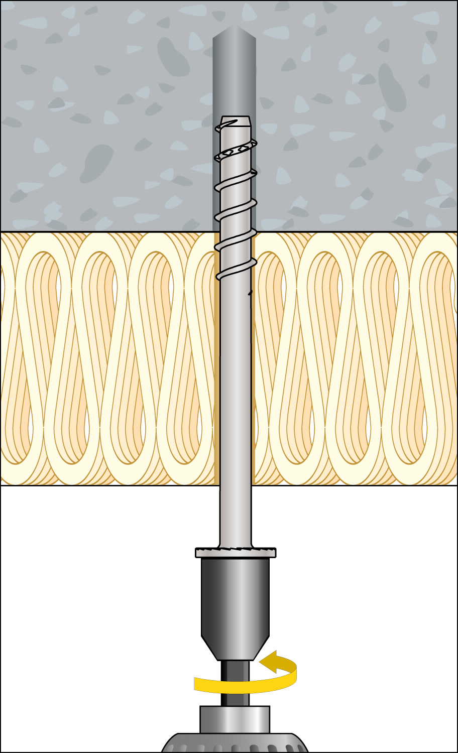 Mit der längeren Schraubenlänge überbrückt sie größere Isolierstärken an Betondecken und bietet eine schnelle und sichere Lösung zur Befestigung von Schellen und Schienen an Beton durch die Dämmung hindurch. Versionen mit M8-Anschlussgewinde dürfen gemäß der Zulassung zudem für den Einbau von Sprinkleranlagen verwendet werden.