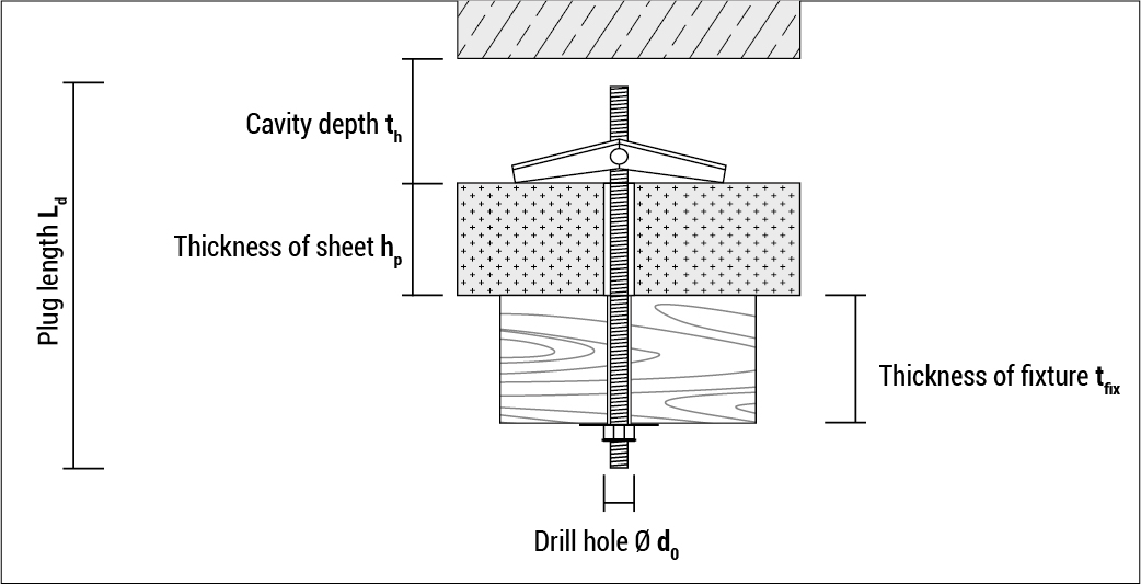 - Geeignet für Befestigungen an Hohldecken, -wänden und auf Platten, z.B. Gipskarton oder Spanplatten