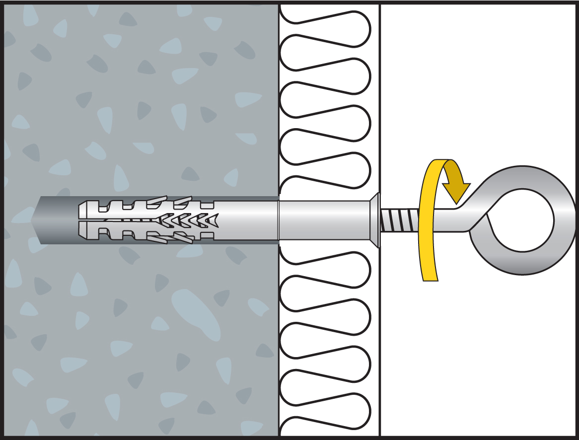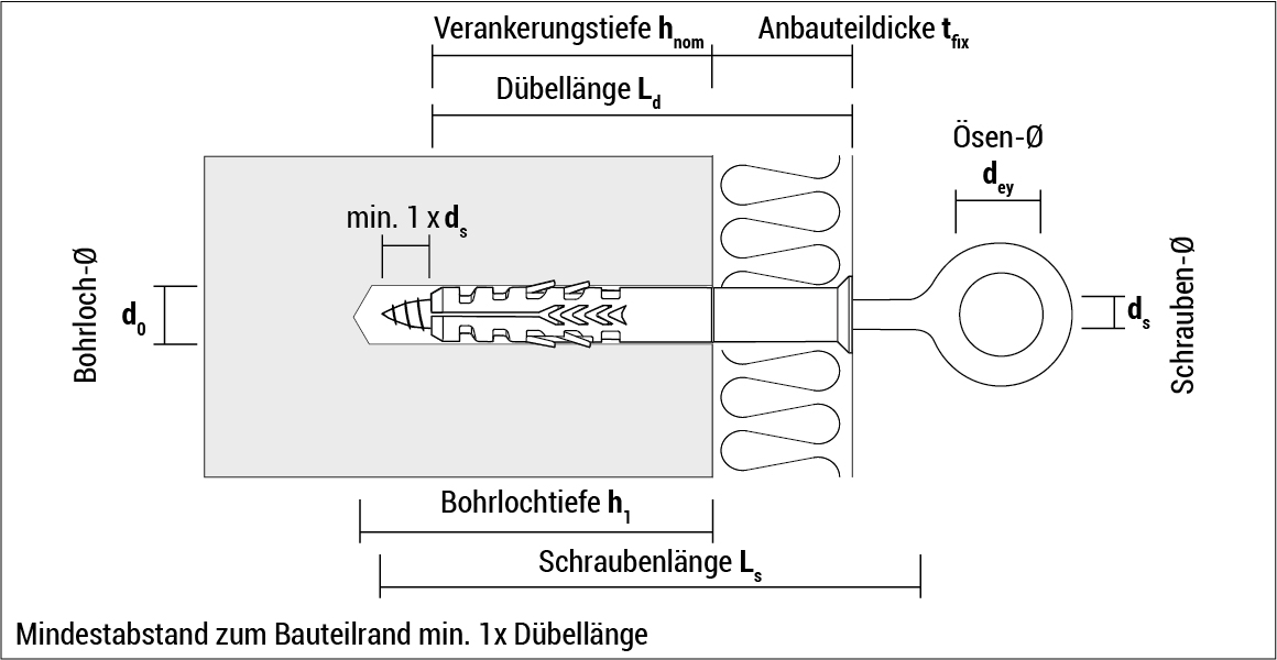 - Nylondübel GR ist optimal abgestimmt auf die Ösenschraube OES für hohe Haltewerte