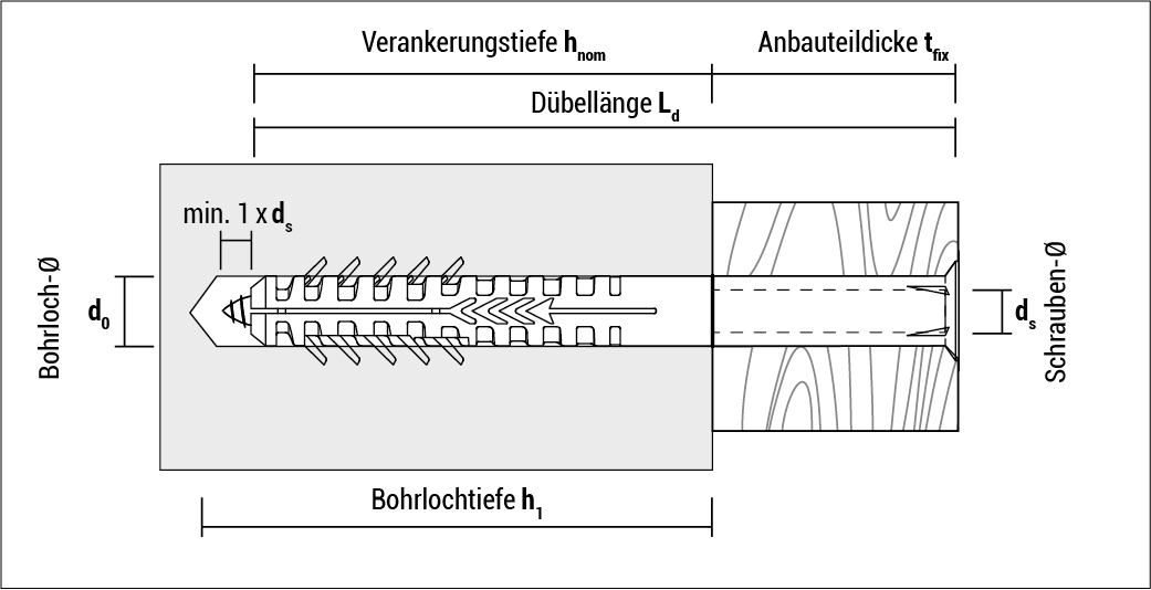 - Setztiefe 90 mm: Langer Spreizdübel für sicheren Halt in Lochsteinen