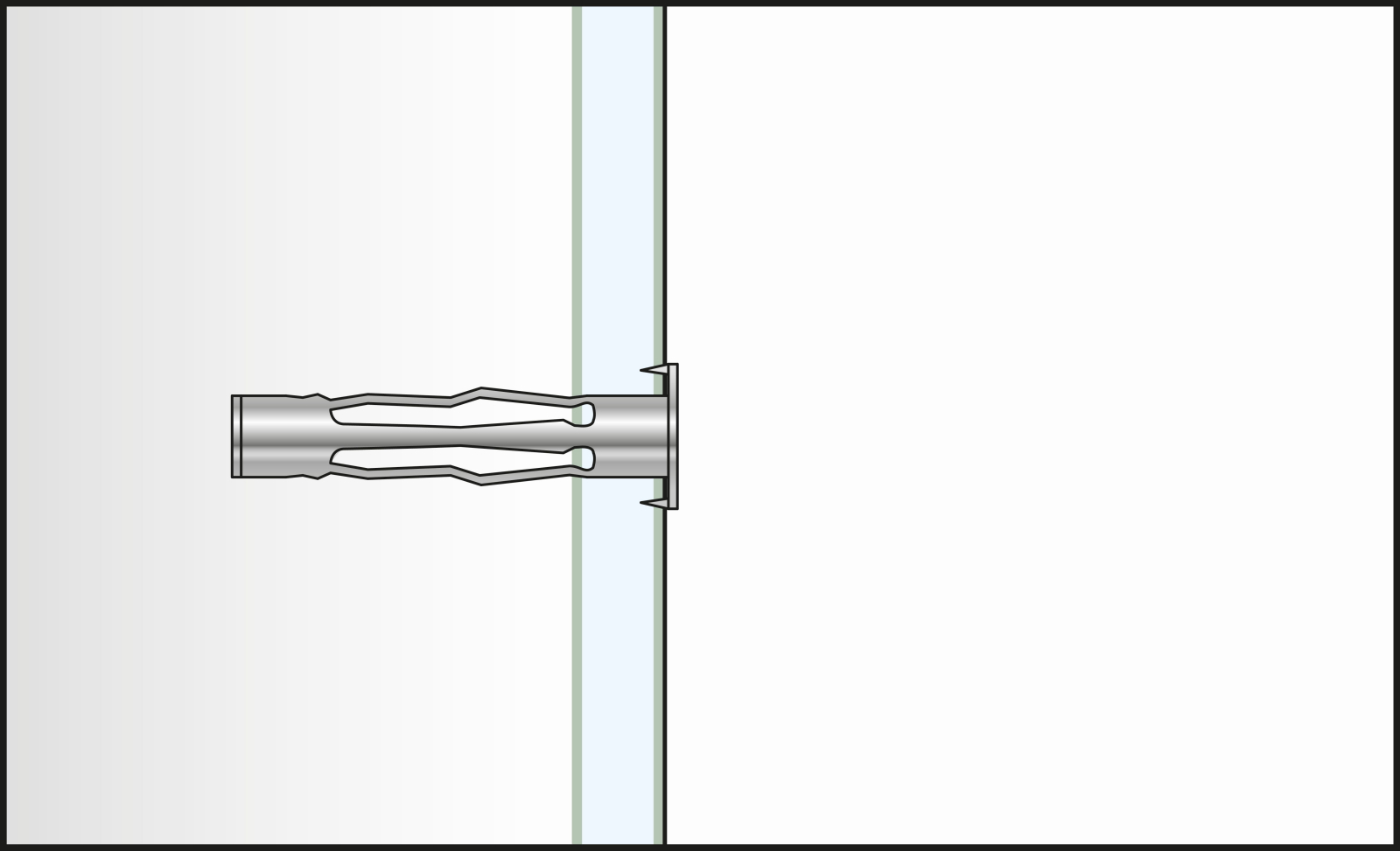 - Geeignet für Befestigungen auf Plattenbaustoffen, z.B. Gipskarton- oder Spanplatten, aber auch z. B. in Hohldecken