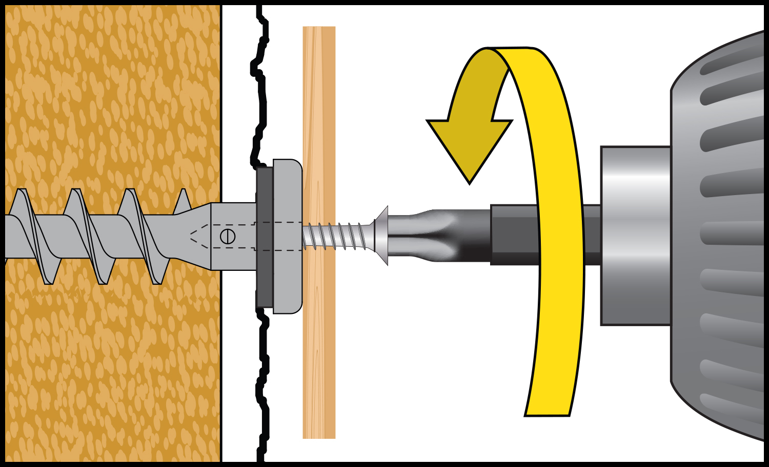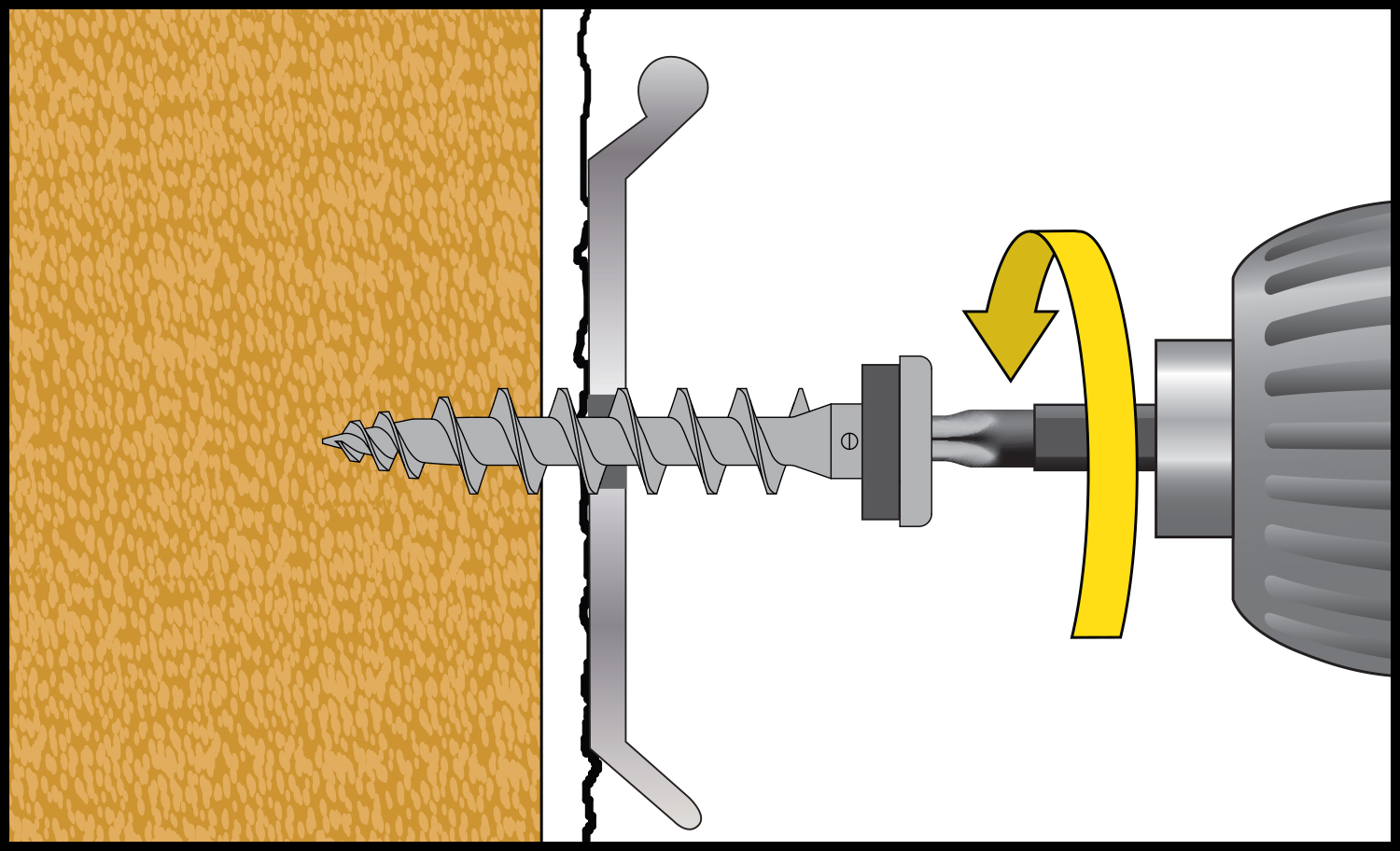 - Vorbohren in Putz (≤ 7mm) entfällt i.d.R. aufgrund scharfer Bohrspitze