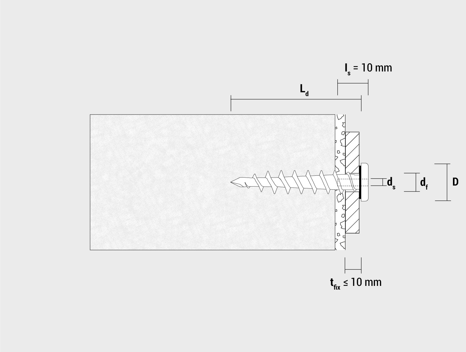 Optimal einschrauben lässt sich die Schraube in Durchgangslöcher von 8 mm Durchmesser, wie sie bei Wandprofilen oder Kappleisten üblich sind. IPSZ-H 55 wurde speziell mit einer Länge von nur 55 mm passend für Holzfaserdämmplatten ab 60 mm entwickelt, wo die ausgeprägten Gewindegänge für einen sicheren Halt sorgen.