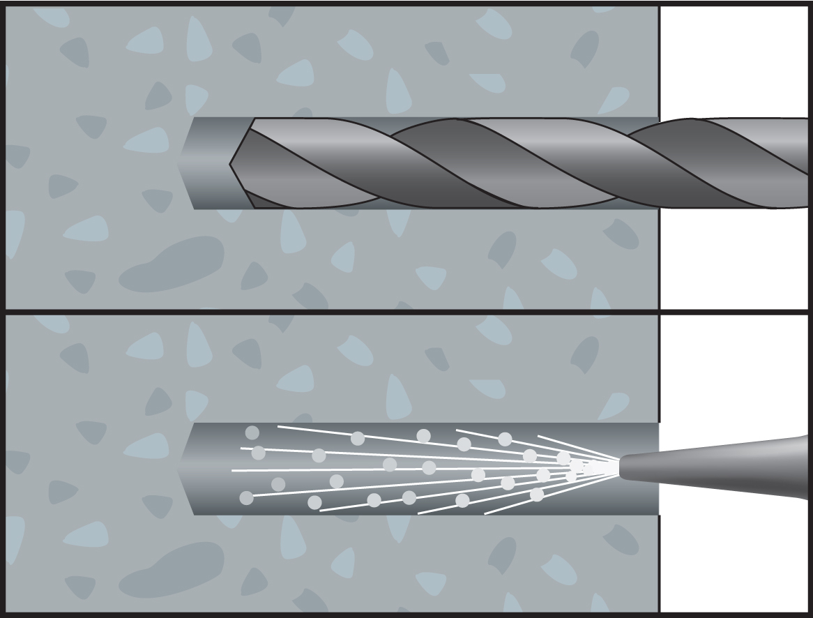 - Die starke Spreizfähigkeit des Schlagankers ermöglicht eine geringe Bohrloch- und Setztiefe