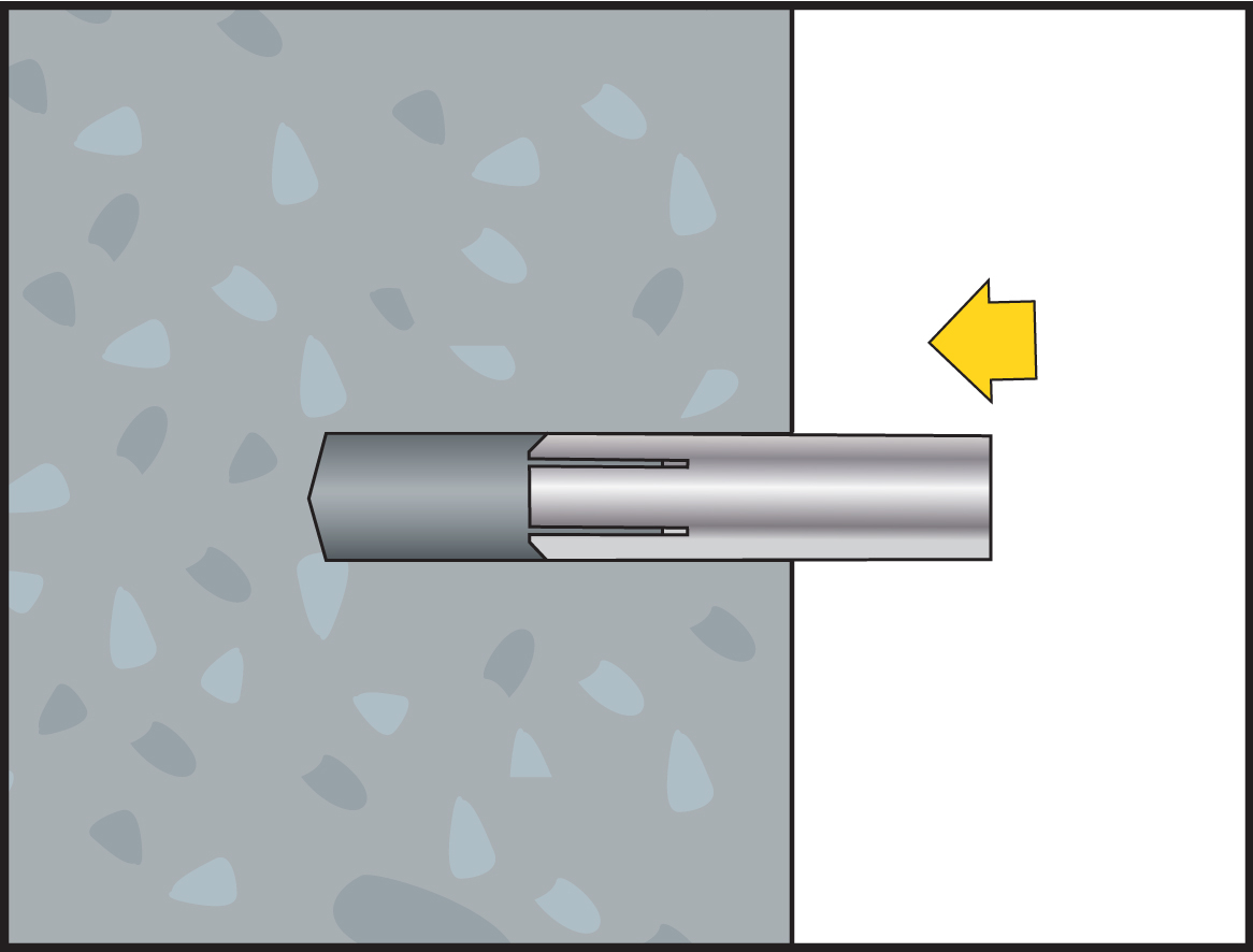 - Für die korrekte Montage ist ein Einschlagwerkzeug erforderlich, um den Dübel richtig zu spreizen