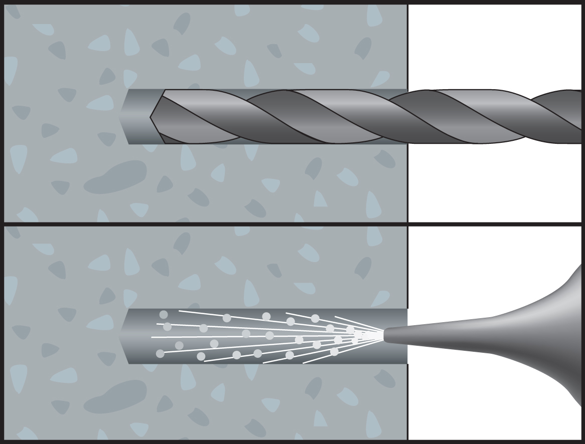 - Bei der Montage wird das Glasröhrchen zertrümmert und vermischt sich mit dem Harz, Härter und den Zuschlagstoffen