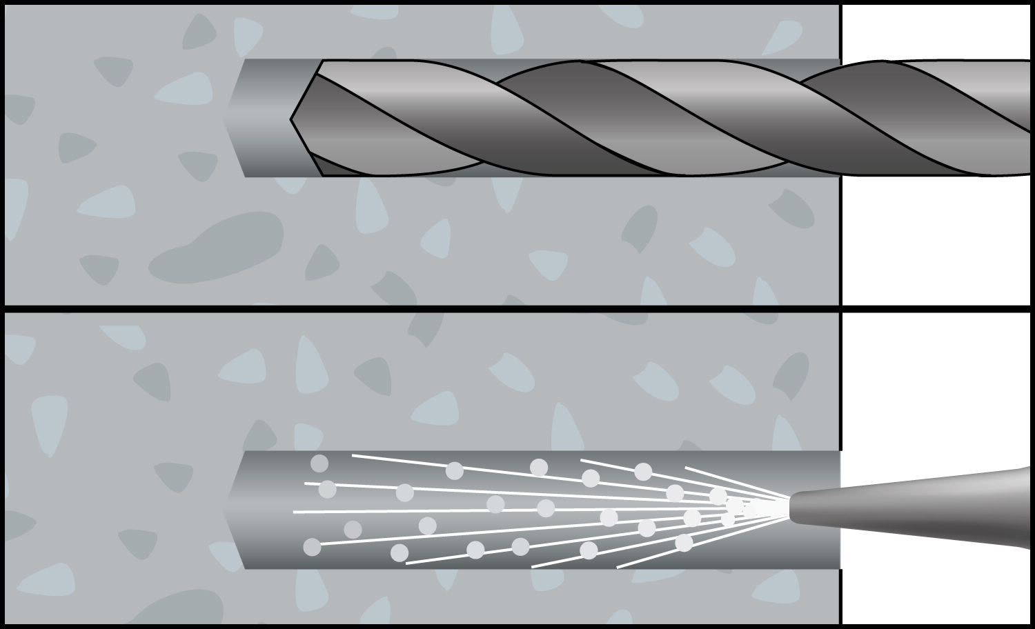 - Zwangweise kraftkontrollierte Spreizung der Hülse beim Festziehen der Schraube bzw. des Bolzens im Bohrloch