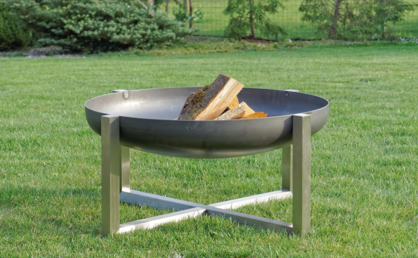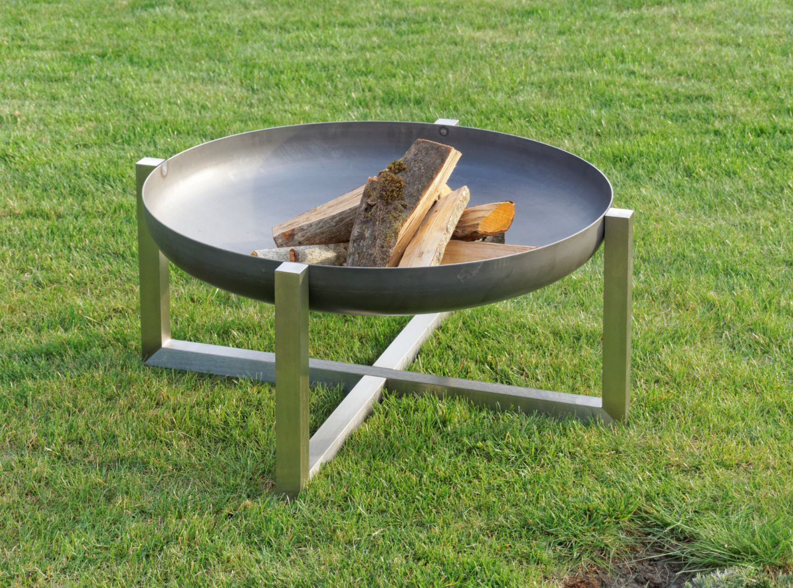 Design Feuerschale CROSS Größe Super XXL - Edelstahl-Basis mit Feuerschale aus massivem Rohstahl 2,5 mm