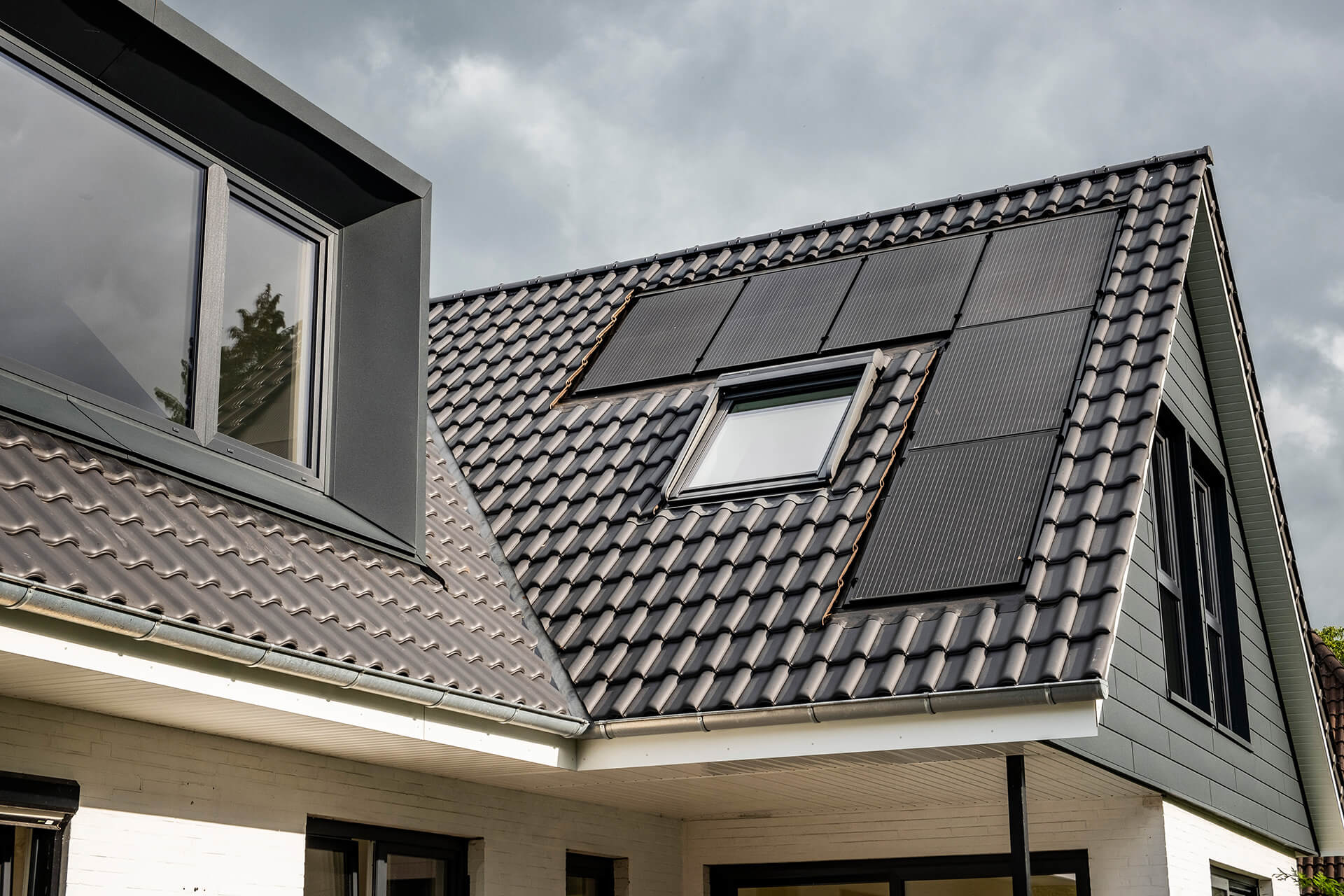 Ausgewählte Dachfensterlösungen lassen sich durch ein passendes Anschlusssystem in das System ästhetisch einbinden.