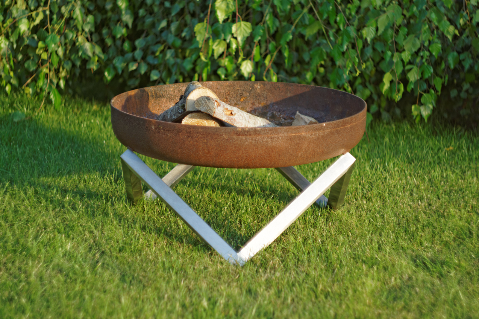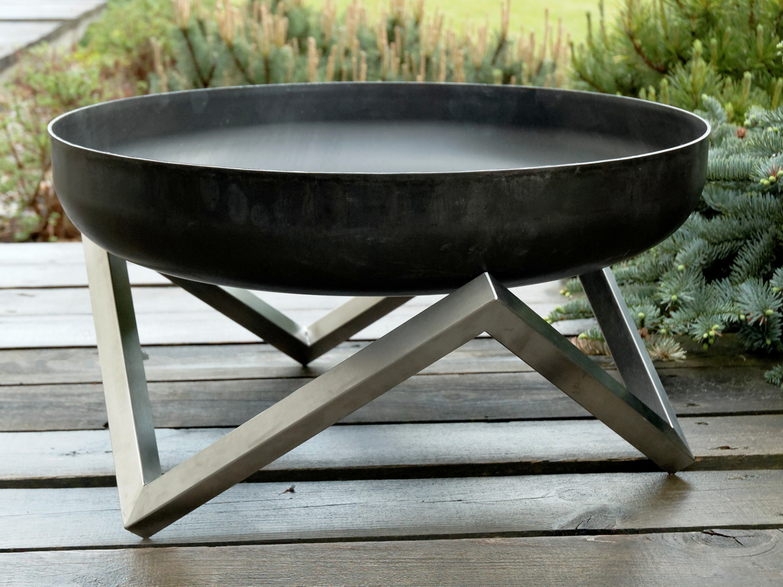 Design Feuerschale "Z" Größe XXL - Edelstahl-Basis mit Feuerschale aus massivem Rohstahl 3,2 mm (rostend)
