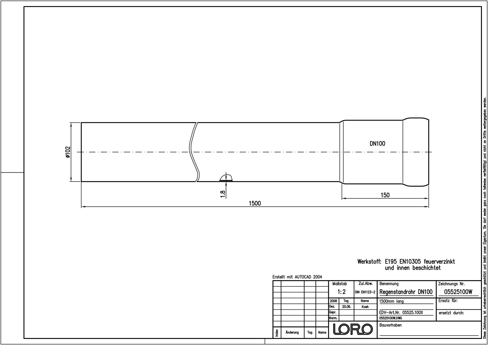 LORO-X Regenstandrohr, aus Stahl, feuerverzinkt, rund, ohne Reinigungsöffnung nach DIN EN 1123 mit erhöhtem Qualitätsstandard gemäß RAL-Gütezeichen GZ-694, mit 2-Kammern-Steckmuffenverbindung, Baustoffklasse A1, formstabil, bruchfest, rückstausicher, langlebige Innenbeschichtung gemäß DIN EN ISO 2178 auf Basis einer 2K-Epoxid-Kombination, Farbton: Rotbraun, 1500 mm, DN 100