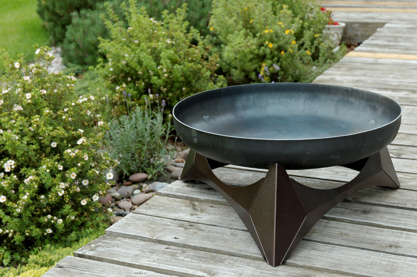Design Feuerschale ARKA Größe M - Unterbau kupferfarbig pulverbeschichtet mit Feuerschale aus massivem Rohstahl 3,2 mm (rostend)