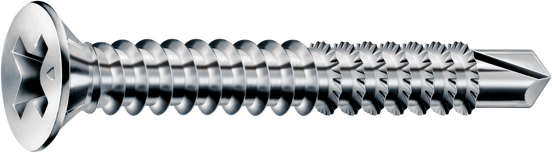- Flachsenkkopf mit Fräsrippen: sauberes und bündiges Versenken des Kopfes