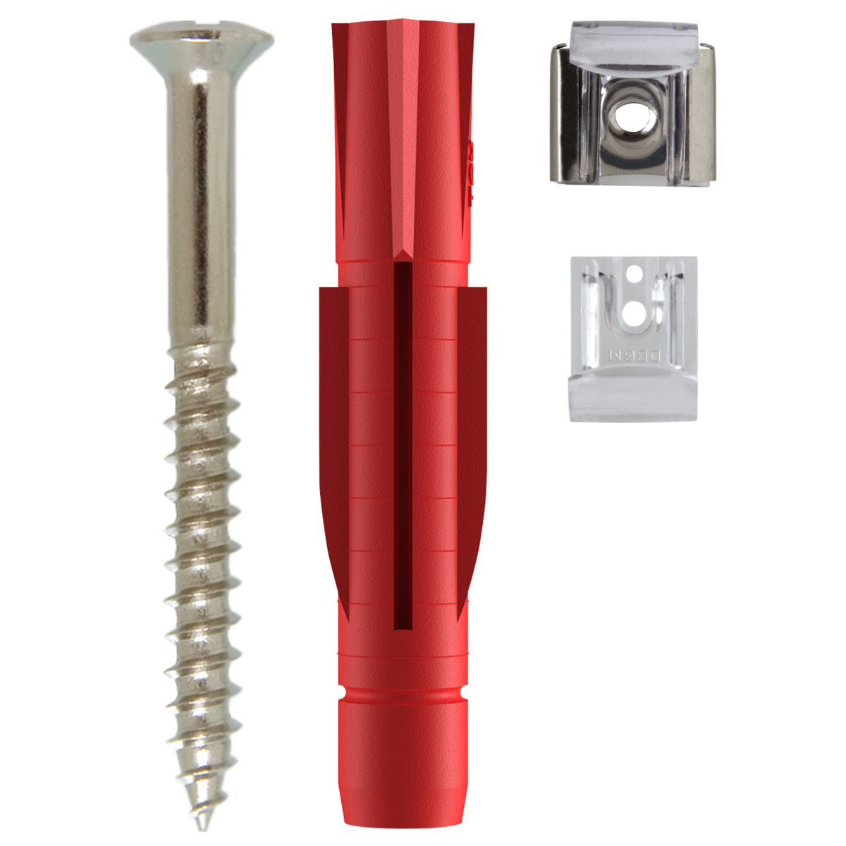 - Tri-Dübel, zwei federgelagerte Metallklammern, zwei Kunststoffklammern und Schrauben mit PZ2-Antrieb