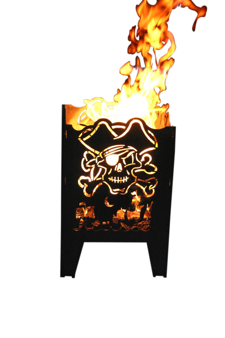 Feuerkorb Größe XXL Motiv Pirat aus Rohstahl - Stecksystem - mit Ascheblech und massiven integriertem Gitterrost