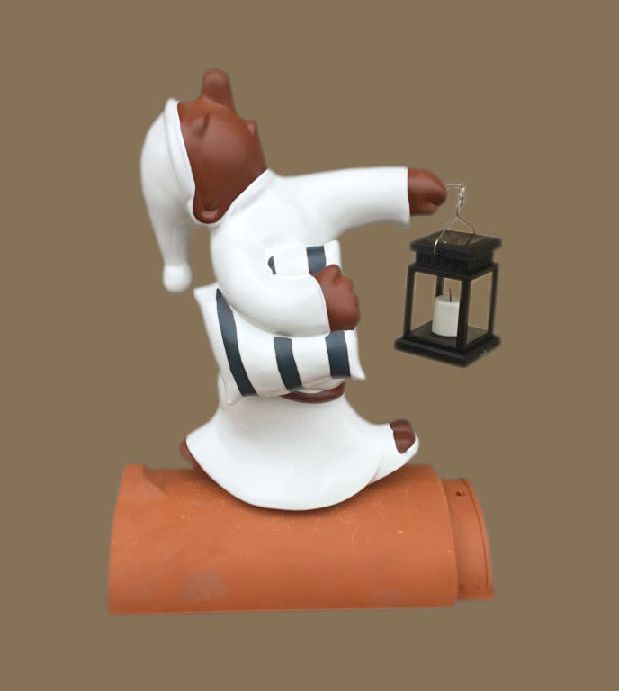 Es handelt sich um Grobkeramik, wobei die Modelle auf einen Firstziegel montiert wird der i.d.R. zwischen 5-20m Enfernung vom Erdboden betrachtet werden und somit für das Auge auch nicht erkennbar sind.