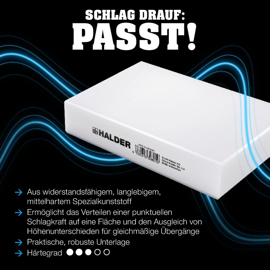 6 Schlageinsätze mit verschiedenen Härtegraden im Durchmesser 30 mm bis 60 mm stehen zur Auswahl.