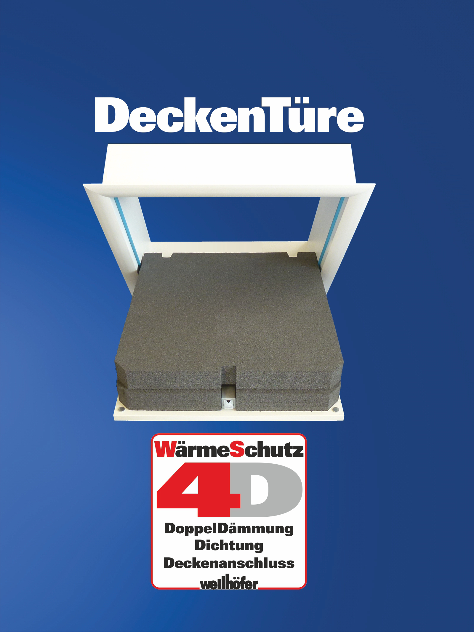 Die hochwertigen Deckentüren sind, wie die Bodentreppen von Wellhöfer, ideal für die saubere und schnelle Montage: Einbaufertiges Bauelement.