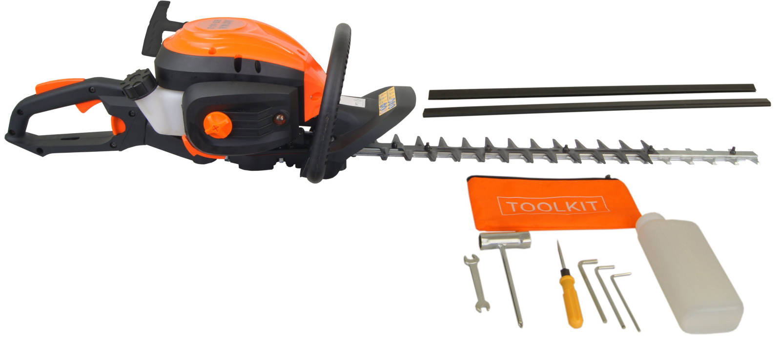 Doppelseitig schneidende Benzin - Heckenschere für das problemlose Beschneiden von Hecken und Sträuchern.
