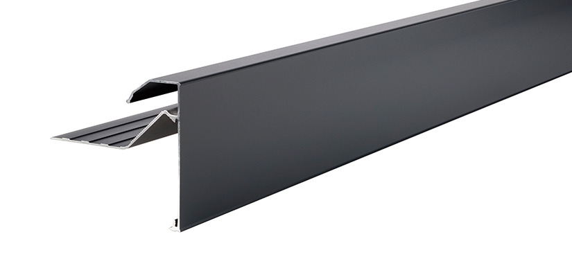 Das zweiteilige Flachdachabschlussprofil Galant mit Kombi-Klemmprofil für Folie und Schweißbahn gibt es in den Blendhöhen 100, 130, 150 und 200 mm.