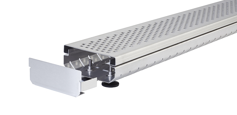 Mit Hilfe eines Inbusschlüssels lässt sich DrainGuide mit wenigen Handgriffen von oben durch das Designrost millimetergenau justieren.