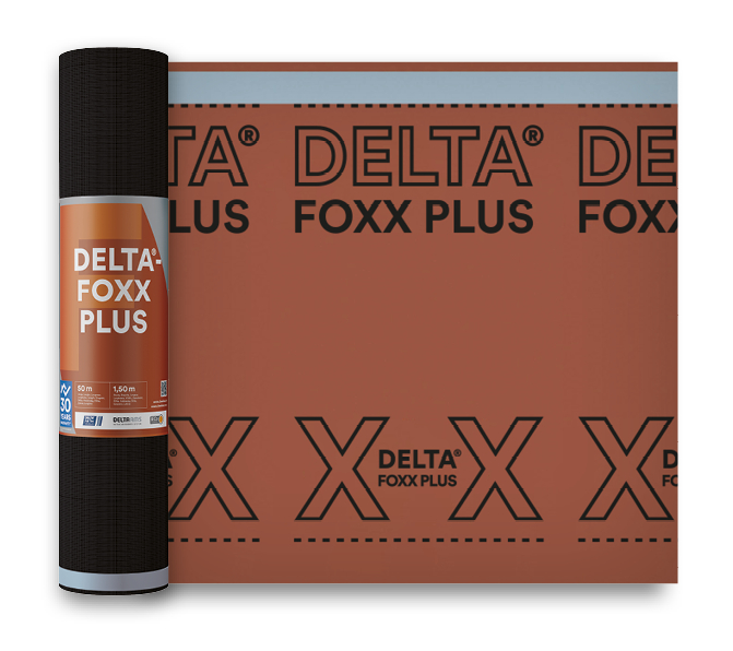 Als DELTA®-FOXX PLUS mit integrierten Klebezonen an beiden Rändern für eine schnellere und sichere winddichte Verlegung.
