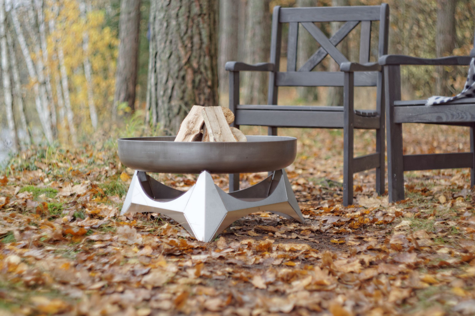 Design Feuerschale ARKA Größe XXL- Edelstahl-Basis mit Feuerschale aus massivem Rohstahl 3,2 mm (rostend)